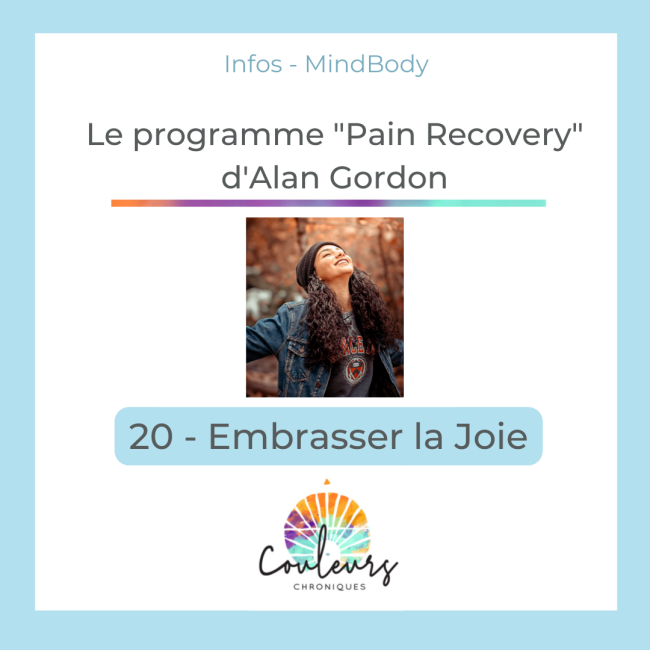 Alan Gordon insiste sur l’importance d’amener de la joie dans notre vie, de suivre ce programme avec légèreté, sans pression. Le désespoir, le combat, les attentes, l’urgence à se débarrasser de la douleur sont contre productifs et maintiennent notre système nerveux en alerte. La joie est une émotion de base, elle se ressent dans notre…
